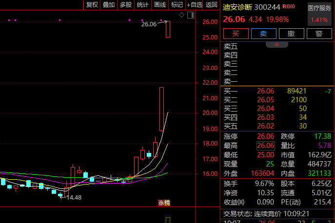 AI医疗、制药概念走强,迪安诊断(300244)、美年健康(002044)2连板,睿智医药、英诺特、泓博医药、卫宁健康(300253)跟涨。