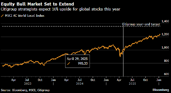 花旗集团策略师指出,2026年投资者将继续加大对美国股票以外资产的配置多元化,这一趋势将推动全球基准股票指数进一步上涨10%。